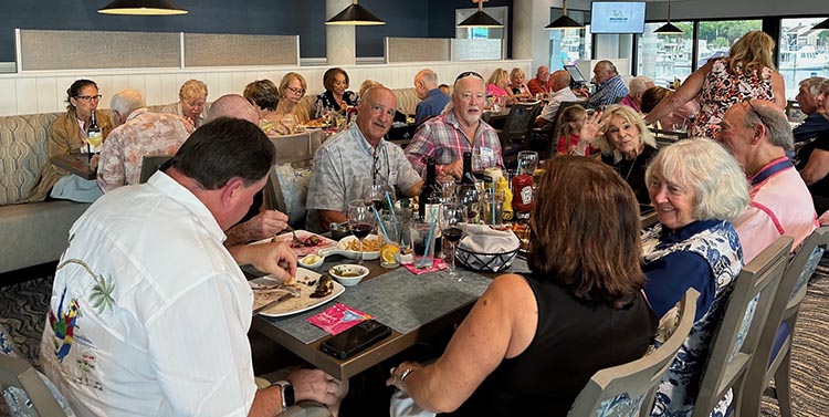 Four summer dinners are held each year, with the first in June and the last in September. The August dinner brought more than 40 residents to the Wheelhouse Grille for a fun evening. The hosts for the night notify the Wheelhouse staff two nights in advance how many will be attending so that they can set aside a section for the Arielites.