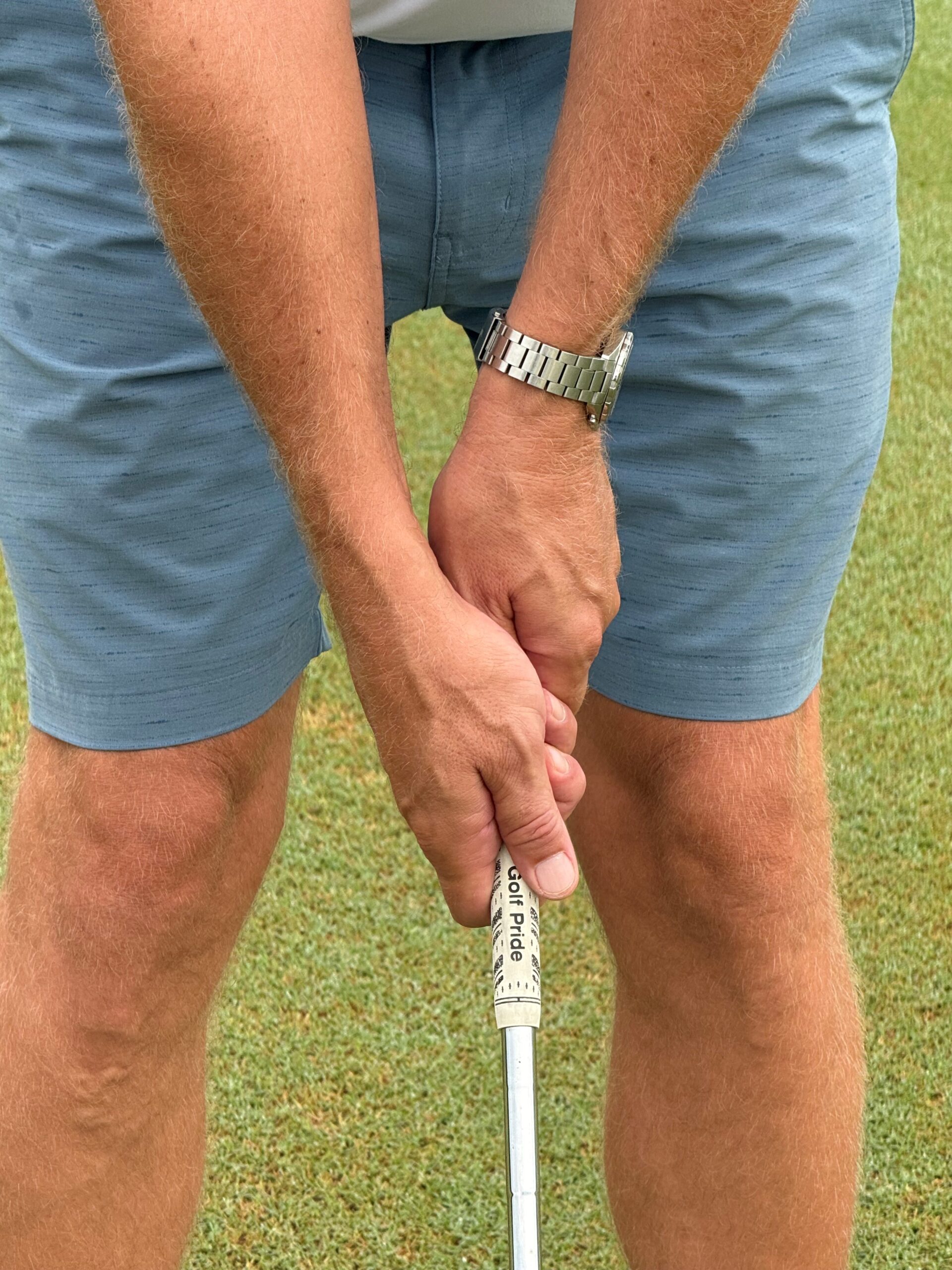 Grip is the most important fundamental in golf. Your grip is what controls the clubface. The top hand on the grip is the controlling hand. In my opinion, this is one of the reasons the grip is so difficult to learn. For example, for most of us right-handed golfers, we are right hand dominant. This means our non-dominant hand, our left hand, is controlling the clubface. When gripping the club, make your V’s, the space between your thumbs and index finger, point to your right shoulder. You should be able to see two knuckles on your left hand. Your thumb on your left hand should rest in the palm of your right hand. And lastly, when it comes to grip pressure, LIGHT never TIGHT!