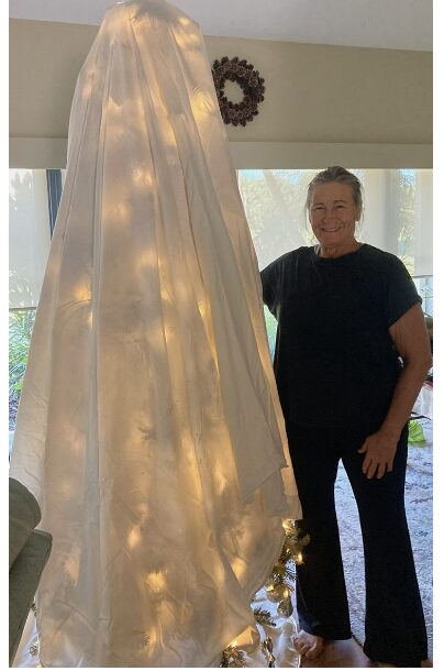On a lighter closing note, my niece, Sabrina Cox, came from California to visit for a few days to help out at 4488. She brought out our holiday decorations including the tree. She got carried away and decorated it, then decided it was a bit premature for the season and converted it to a giant ghost!