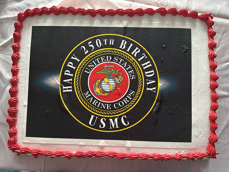 This year’s cake celebrated the 250th anniversary of the Marine Corps.