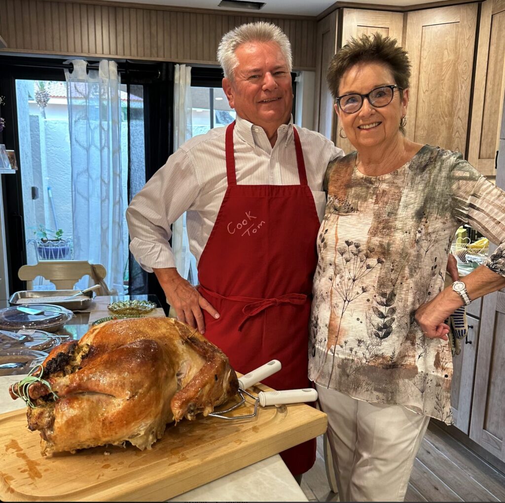Larry and Jackie Wagner have been long term owners on Bow Sprit in Windjammer Village. They came through again by hosting a great Thanksgiving dinner this year. Linda Tucker, Carole Lundgren, Al Wagner, Bev and Tommy Reeves, and Tom and Eva Bell were invited to the gathering. We enjoyed an amazing meal of turkey, mashed potatoes, Brussels sprouts, dressing (aka stuffing), corn casserole and two delicious cranberry sauces. Jackie’s apple, cherry, and pecan pies were the finale to this feast.
