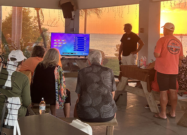 Dennis Clark played music during dinner and afterwards entertained us with a fun Music Trivia game. He is so talented and everyone enjoys his trivia and karaoke. We are very fortunate to have talents like Dennis in our village.