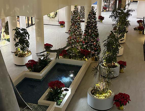 The elves started working on the holiday displays well before Thanksgiving. They spent many hours putting ornaments on numerous trees, and assembling crèches, Menorah tables, winter scenes, beautifully wrapped gift boxes, hanging wreaths, and much more. All the common spaces took on a very festive air.
