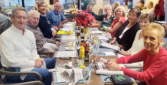 The New Year’s Eve Party at the Wheelhouse drew a lively crowd. The stations allowed for a nice interaction amongst Landings friends. Some of the stations were roast beef, pasta salad, appetizers of pork wings, egg rolls, and meatballs. Others included wedge salads, grouper tacos, and an assortment of desserts. Steamboat Bend East had a significant presence and fortunately were able to sit near each other. However you celebrated, we are hopeful for a peaceful and healthy year ahead.