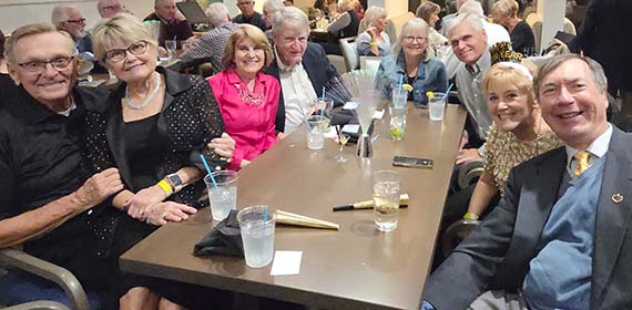 Jan Davis, Dick and Kathy Langton are seated across from new neighbors Sharon and Jere Johnston. Wally and Mary Rea seated across from Ann and Larry Roy.