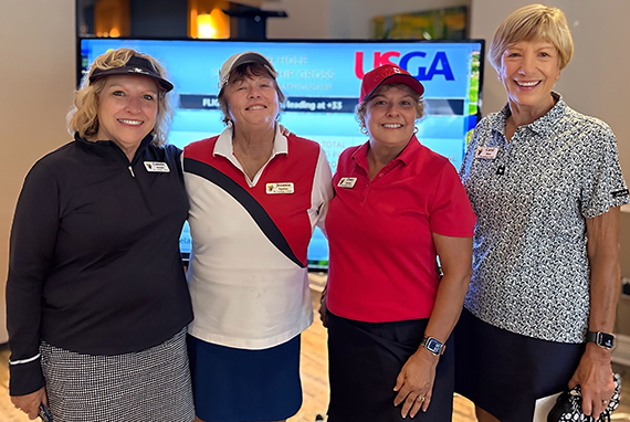 Ginny and Bob Minarchi, Bev and Tom Reeves, and Deb Hedges and Ray Trezise gather after the Sweetheart lunch.