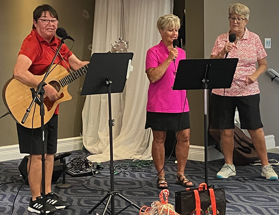 Entertainment was provided by our gifted “3 L’s”, Liz Welsh, Lynda Redmon, and Lisa Cates who wrote lyrics to several familiar tunes, noting our own golfers, league experiences, and golfer fun throughout. Outstanding job, gals!