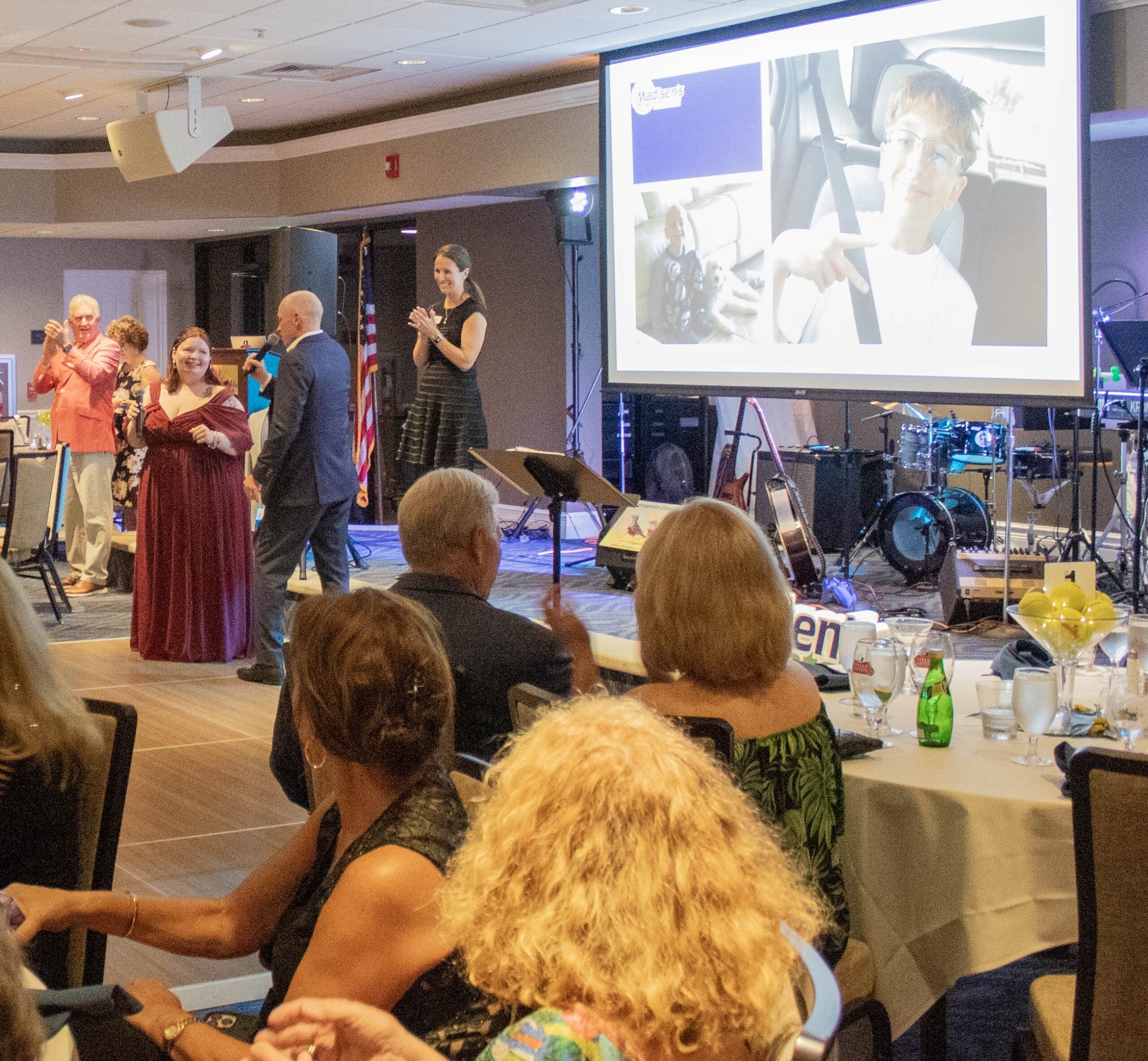Duane Chaney introduces his niece Madisen Abramson to the guests assembled at the Madisen’s Match Gala Auction Dinner held in the Main Deck of the Helm Club on Friday, March 13, 2026. Ms. Abramson, now age 21, was diagnosed with an inoperable brain tumor at the age of four. Her uncle founded this event in 2009 to raise funds for pediatric cancer treatment at Golisano Children’s Hospital in Fort Myers. This event this year raised more than $140,000 and has donated more than $1.8 million dollars to the cause thus far.