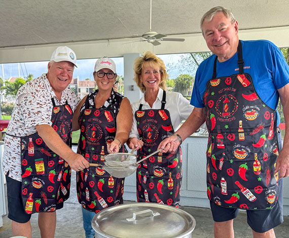 Finally, on March 30 everyone enjoyed a fun time at our annual Low Country Boil held at Picnic Pointe. As always, great food, great company, served up by the Fantastic Four – Mike and Donna Stryker, and Cathleen and Jim Webb.