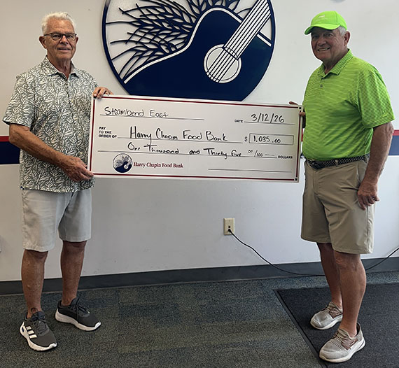 The generosity of SBE neighbors at the St. Patrick’s Day Party enabled Peter Dahlin and Michael Reardon to present
