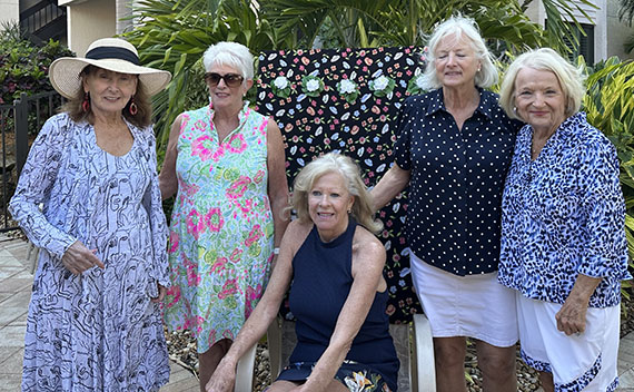 From left: Diana Rohrer, Linda Oleksa, Colleen Clark, Susan Land, and Darlene Kratz enjoying beverages at the “Men’s bar.”