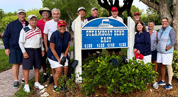 SBE Intervillage Golf Team from left: Jerry Poissant, Dick Langton, Jim Demers, Fred Muhleman, Carol Donohue (captain), Dick Cooper, Brian Londergan, Ty Tylander, Jessie Shipp, Denise McNamara, MaryKay O’Hara and Jo Wagner.